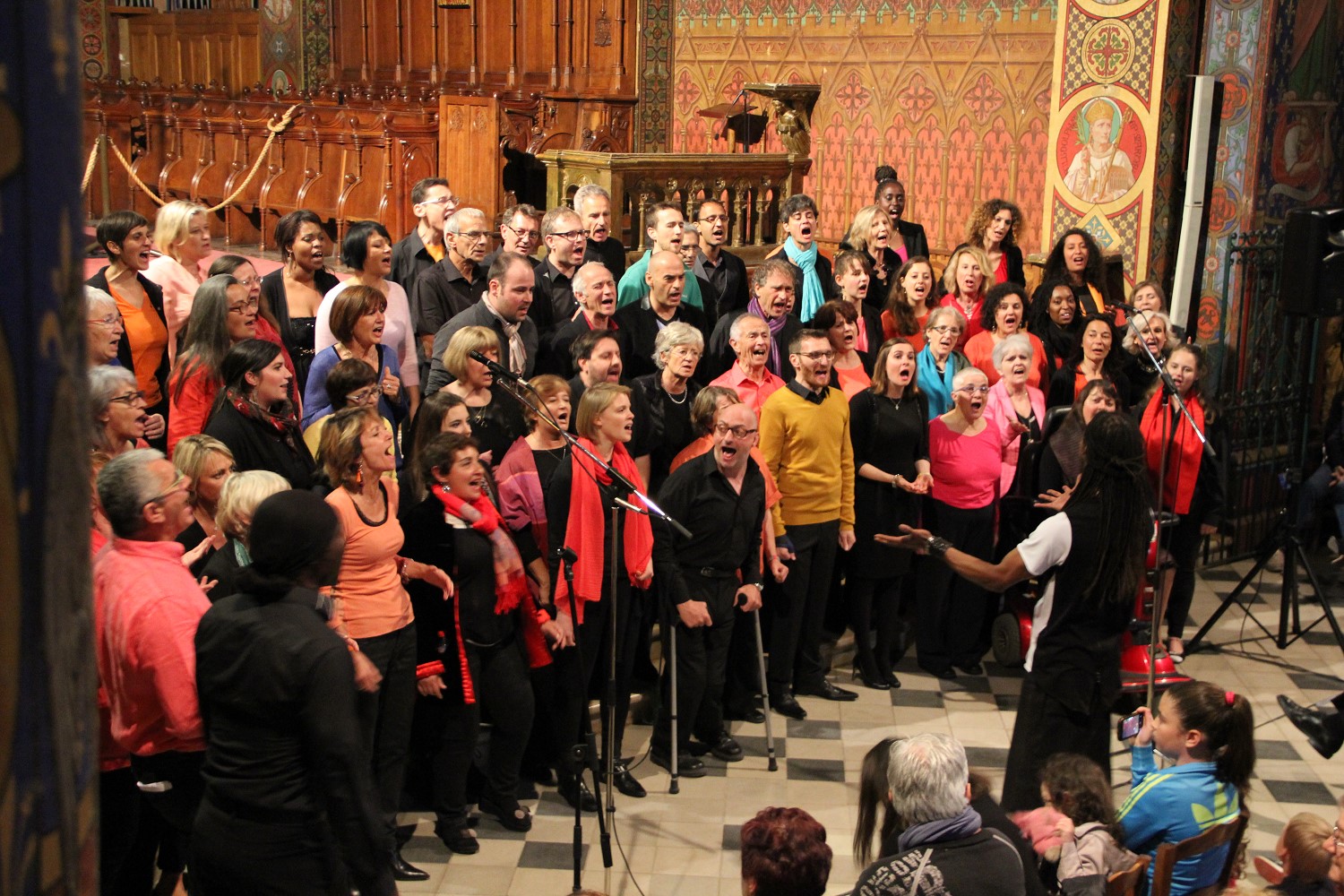Concert à l'abbaye du 1er mai 2015 avec CLEVE FRECKLETON, LIZ WELBUM, JUA AMIR et ses 90 choristes. Un très grand moment de partage d'émotion et de joie partagé avec le public venu très nombreux