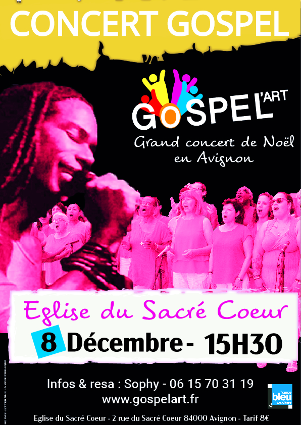 La chorale Gospel’Art se produit en concert plusieurs fois par an à l’occasion de fêtes ou manifestations, du Festival Gospel’Art in Avignon ou de grandes occasions.